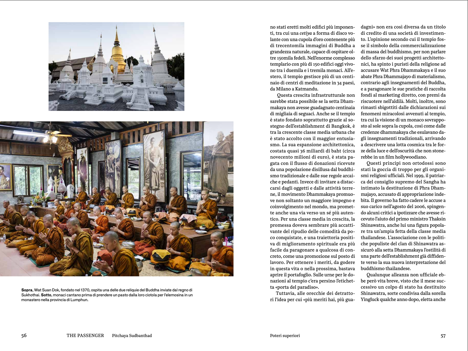 Per capire meglio la Thailandia occorre provare a familiarizzare con il concetto di thainess, o thailandesità, l’ideologia etnocentrica che ha accompagnato lo sviluppo della nazione thailandese moderna per tutto il XX secolo e la cui eco è tutt’altro che svanita. Anzi, a ben vedere, le cause di molte delle fratture che agitano la società contemporanea, alcune più evidenti altre sottotraccia, possono essere ricondotte alla volontà di creare una cultura egemone in un paese multietnico, imposizione che spesso ha preso la forma di una thaificazione forzata e violenta. Da nord – dove persiste il pregiudizio verso il popolo isan – a sud – dove le spinte separatiste delle province a maggioranza malese e musulmana vengono represse da draconiane leggi speciali – lo scontro tra centro (Bangkok) e periferia è una ferita mai sanata. Non solo in termini geografici, ma anche gerarchici, di centralizzazione del potere, come per esempio nella sfera religiosa, dove lo stato cerca, spesso invano, di addomesticare le correnti non ufficiali del buddhismo. Anche dietro le recenti manifestazioni di piazza e i tanti colpi di scena (e di stato) si celano dinamiche simili: la contrapposizione tra chi è ai margini della società, o appartiene a una classe emergente ma ancora senza voce, e l’élite nobiliare e imprenditoriale conservatrice vicina ai centri del potere. Se vuole emanciparsi dal ruolo limitante di ambita meta turistica, far valere il proprio peso economico, proiettare il suo soft power nel mondo, la Thailandia deve prendere esempio dal coraggio e dallo spirito critico di questa nuova generazione che ha a cuore la libertà e i diritti civili. Forse, in fondo, è proprio la prepotenza a essere una caratteristica poco thailandese, in una società che ha anche un volto solare all’insegna dell’armonia, della gentilezza, dell’accoglienza di minoranze e rifugiati, della (relativa) tolleranza verso la comunità lgbtq+. Per quanto ci si sforzi di imporre un’unica cultura, etnia e religione, la vera forza thai sembra essere invece il sincretismo, la metabolizzazione.